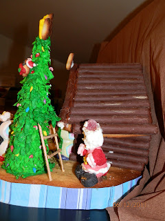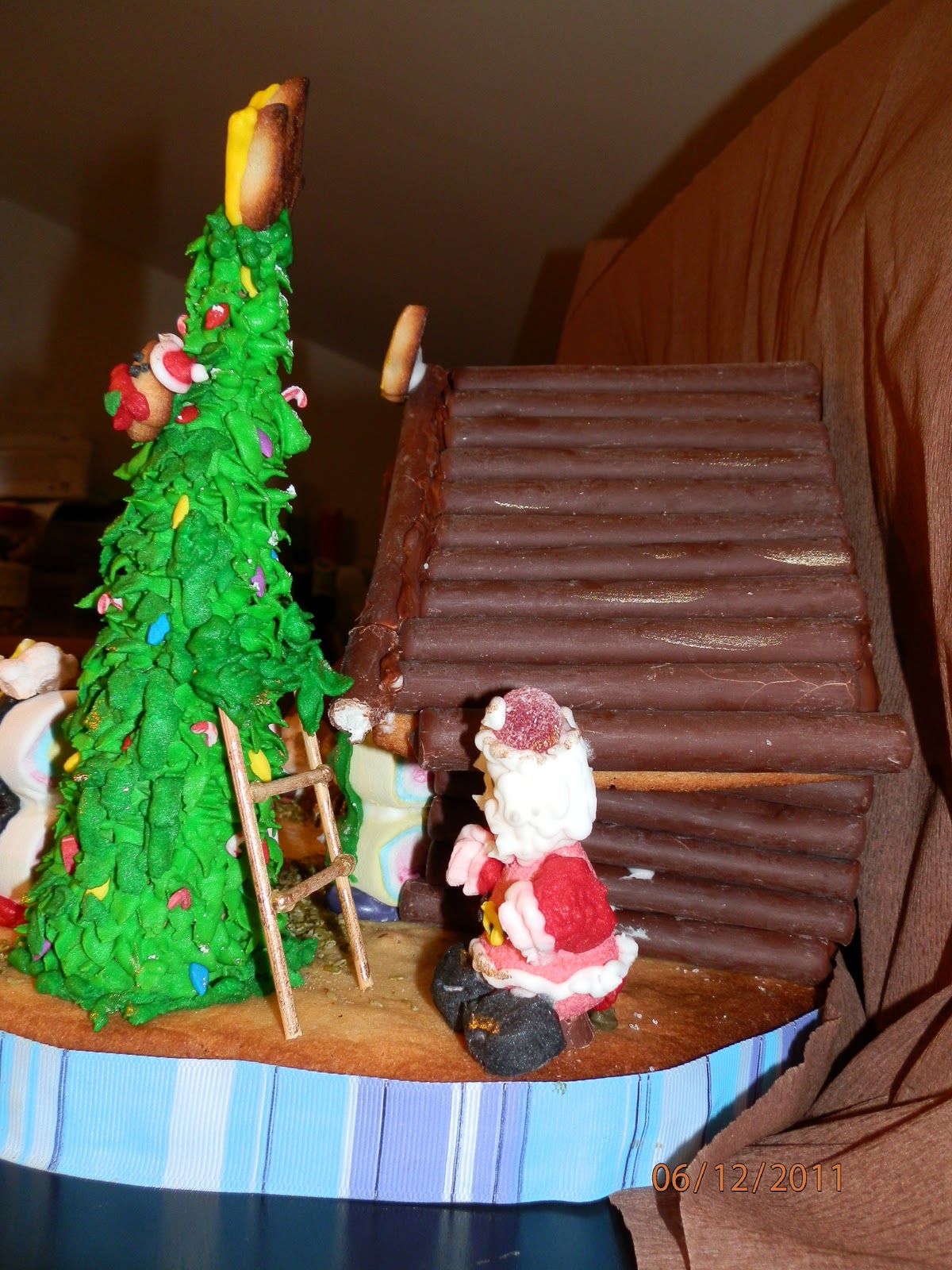 | LA CASA DE GALLETA CUBIERTA POR PALITOS DE NUBE RECUBIERTOS DE CHOCOLATE |
